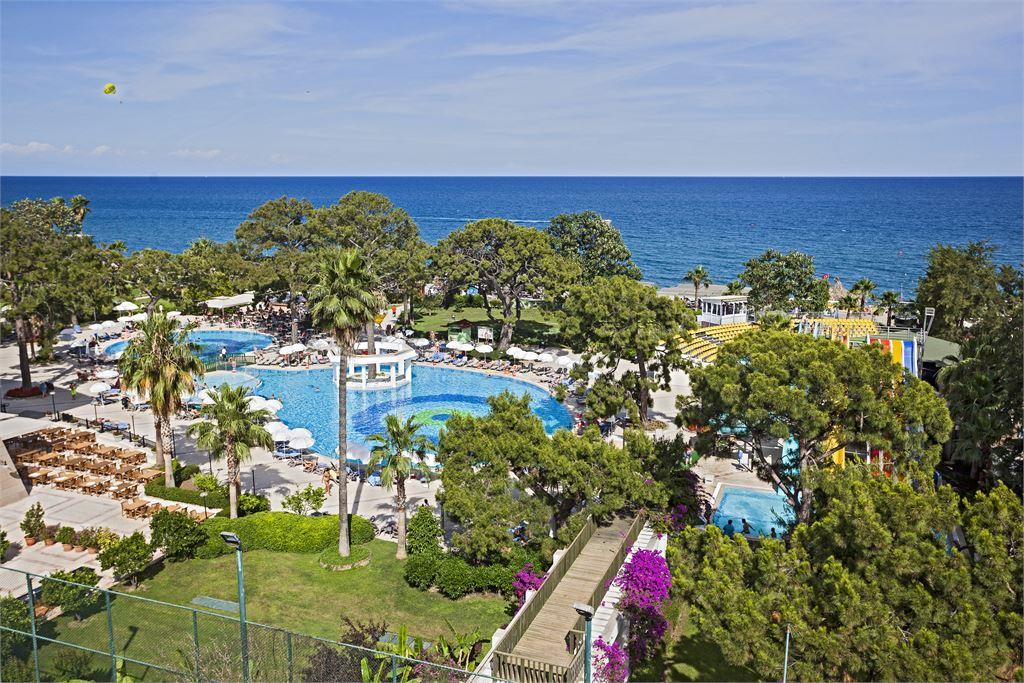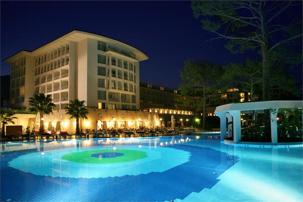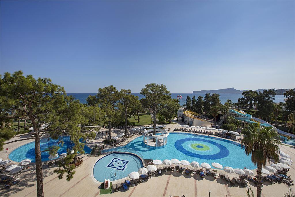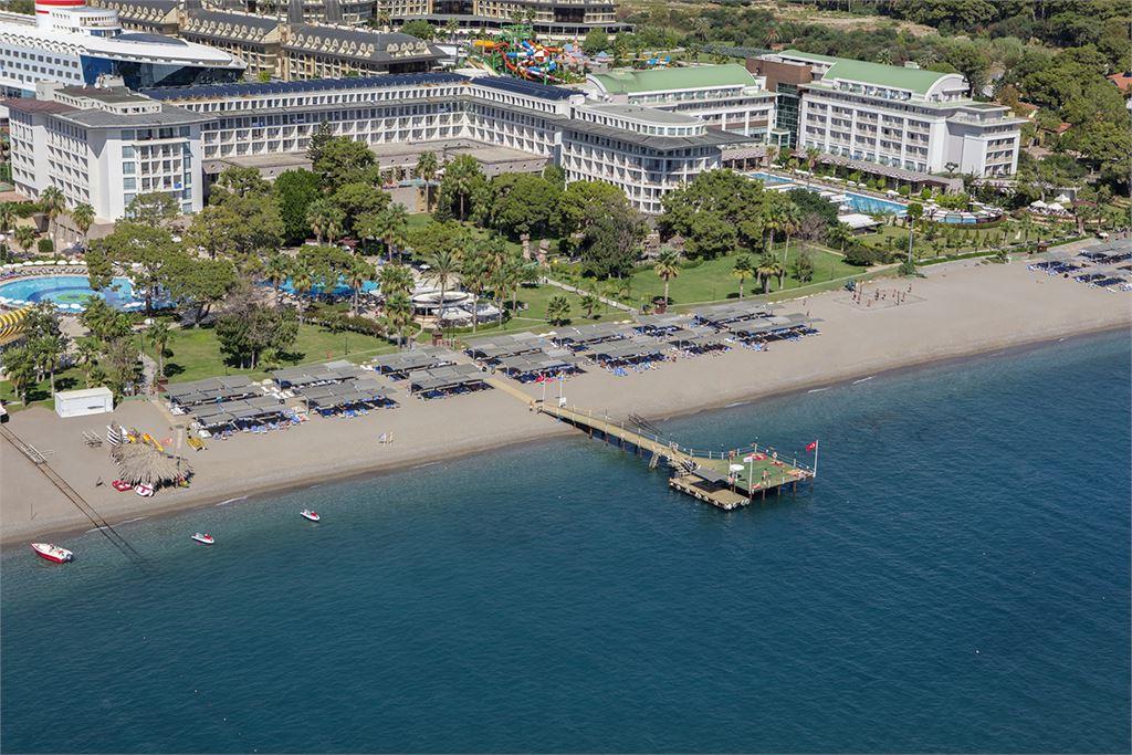 Инфраструктура: 2 открытых бассейна 1090 и 950 кв.м, 3 горки, 1 крытый бассейн 242 кв.м, 2 основных ресторана - крытая секция рассчитана на 350/200 чел., открытая терраса - 250/150 ч. 5 A’la Carte ресторанов: итальянский, мексиканский, рыбный, османский, восточно-азиатский, 6 дней в неделю, 5 баров, теннисный корт (твердое покрытие)