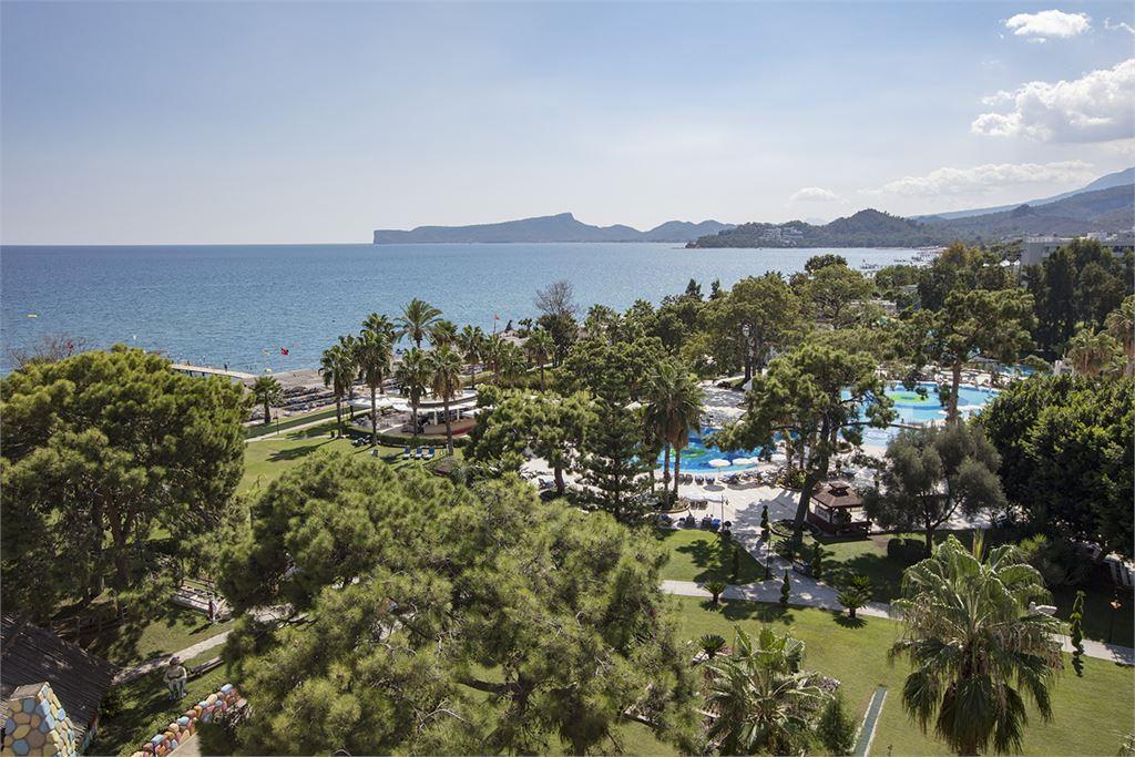 Отель был открыт в 2001 году, реновация проводилась в 2018 г. Площадь территории = 31500 кв.м. Собственный песчано-галечный пляж находится рядом с отелем. Протяженность пляжа составляет 250 м. Шезлонги, матрацы, зонтики, пляжные полотенца - бесплатно. Заход в море - песок, галька.