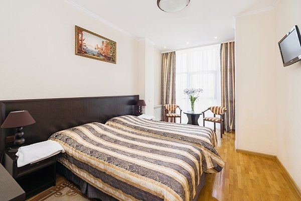 Удобства: Wi Fi, Кондиционер, Мини-бар, Телевизор с плоским экраном и спутниковыми каналами, в ванных комнатах фен.